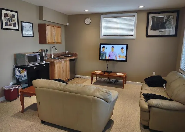 Localizado no distrito Southwest Calgary, o apartamento Spacious One Bedroom Walkout Basement Suite fornece acomodação com vista para o jardim. Parque de Bowness fica a 10 minutos de carro e Downhill Karting by Skyline Luge Calgary fica a 15 minutos de carro de apartamento.